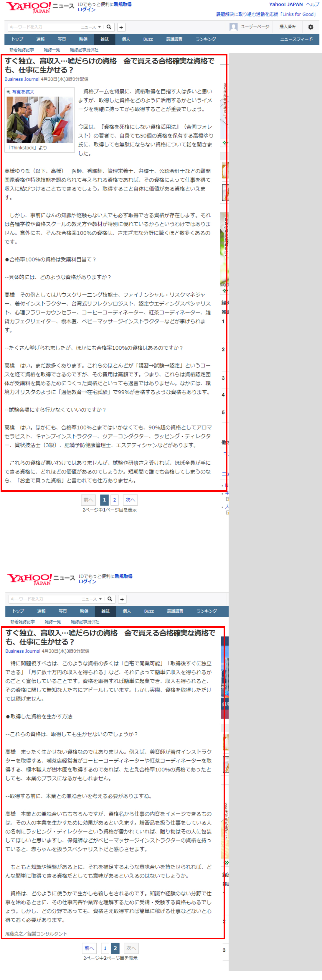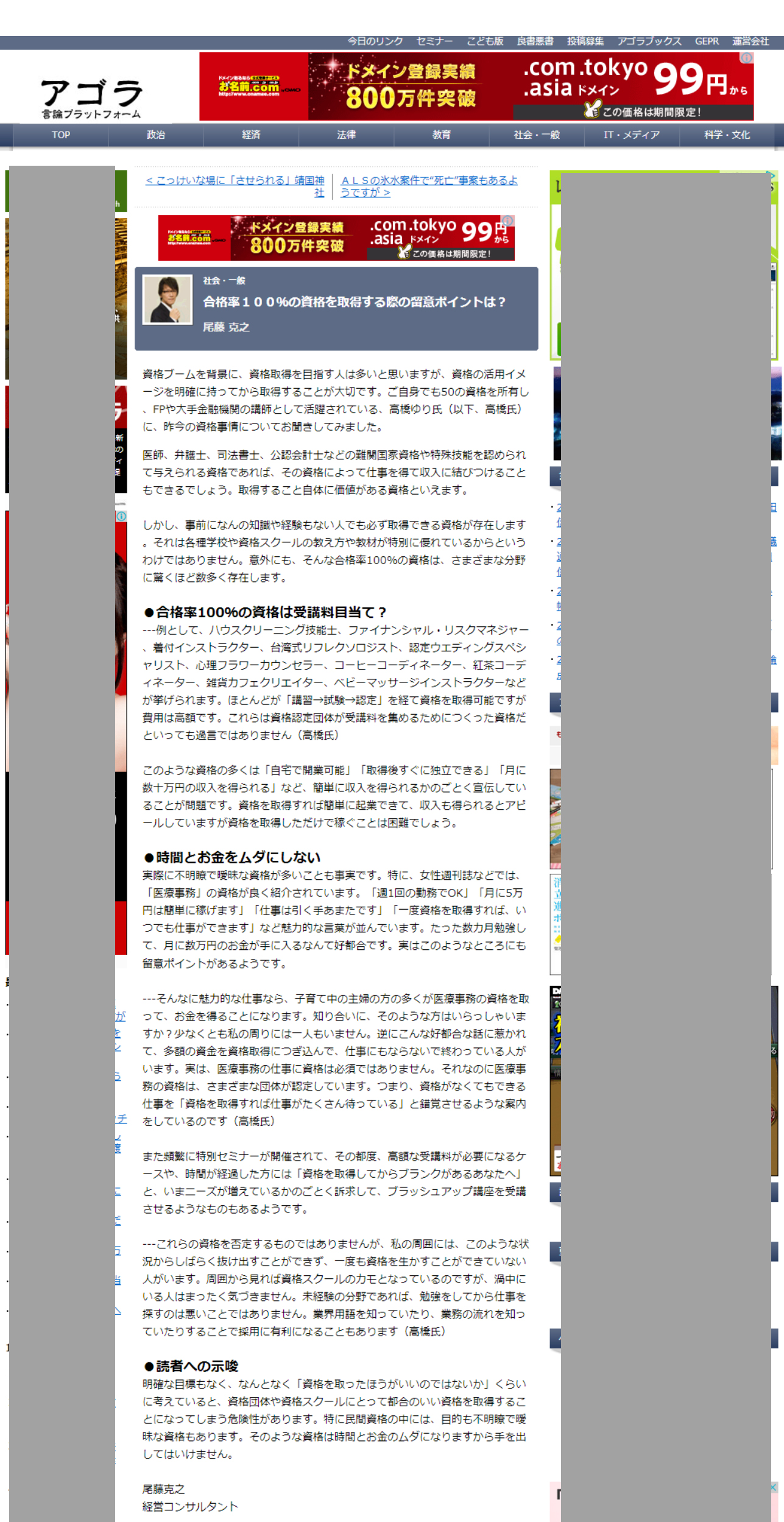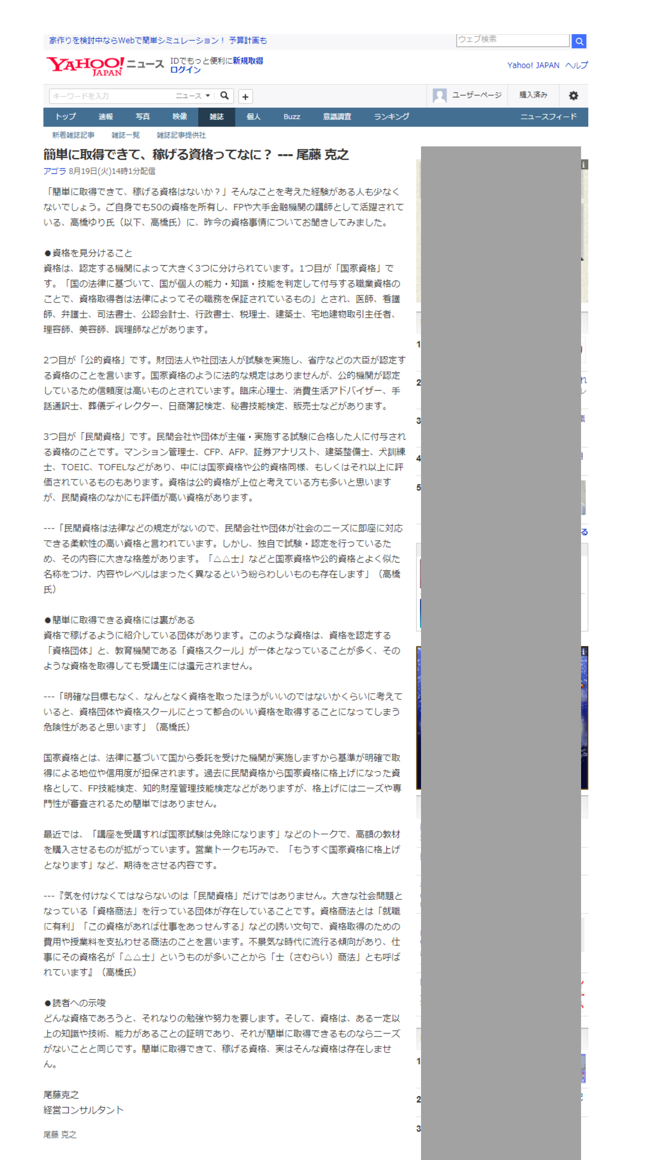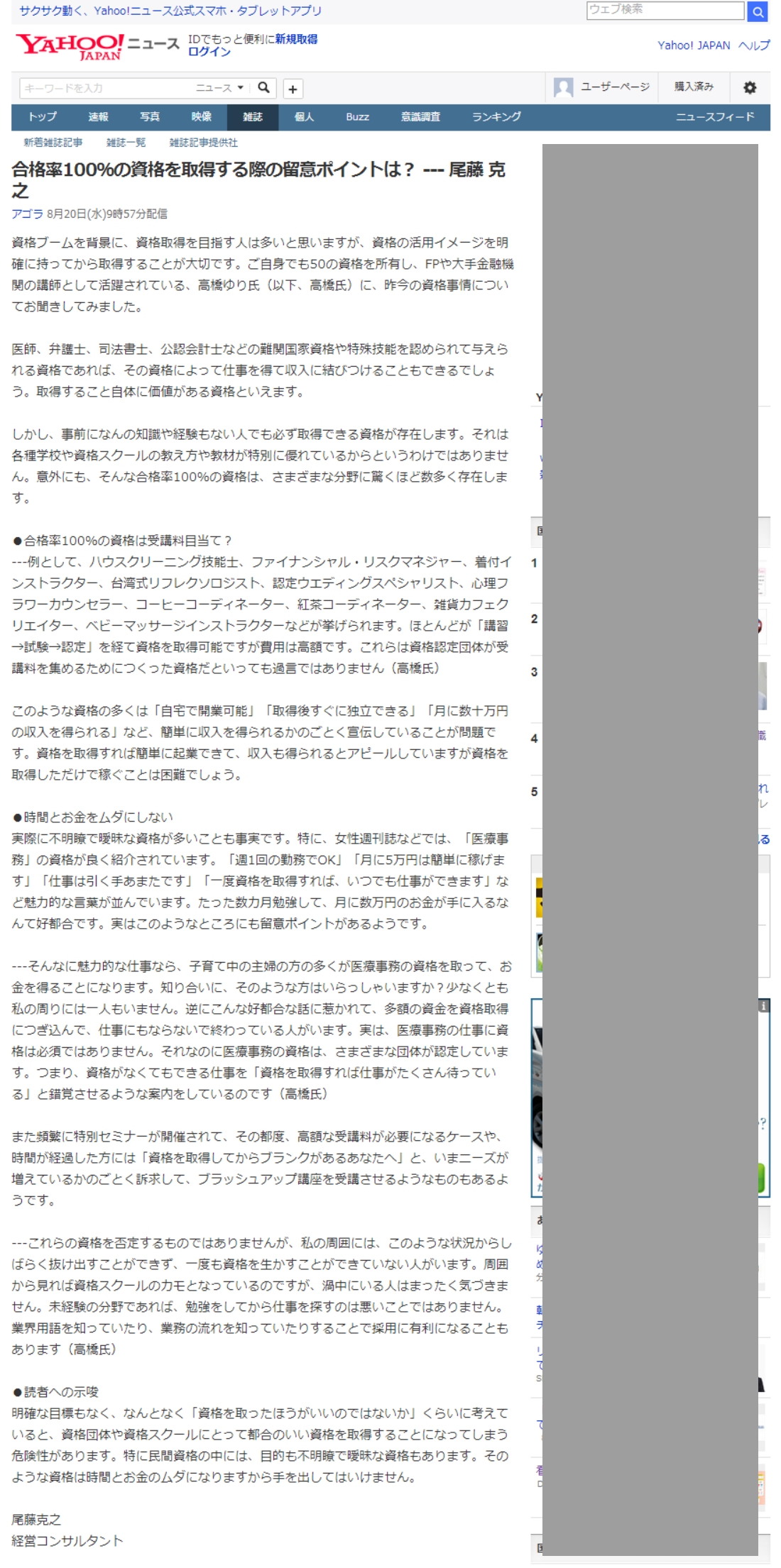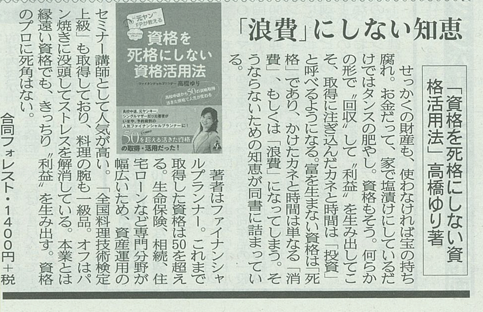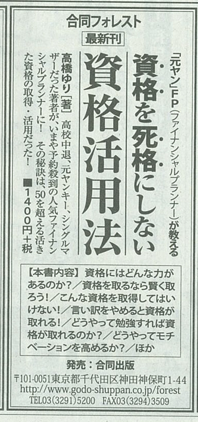 2014/4/6 ヤフーニュースに、書籍【資格を死格にしない資格活用法】の紹介記事が掲載されました。 |