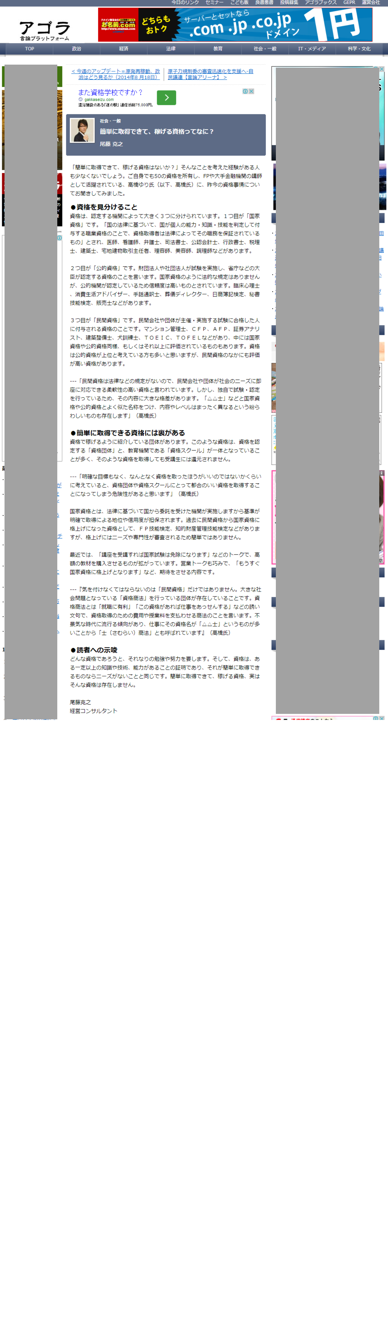2014/8/20 アゴラに掲載されました。 |