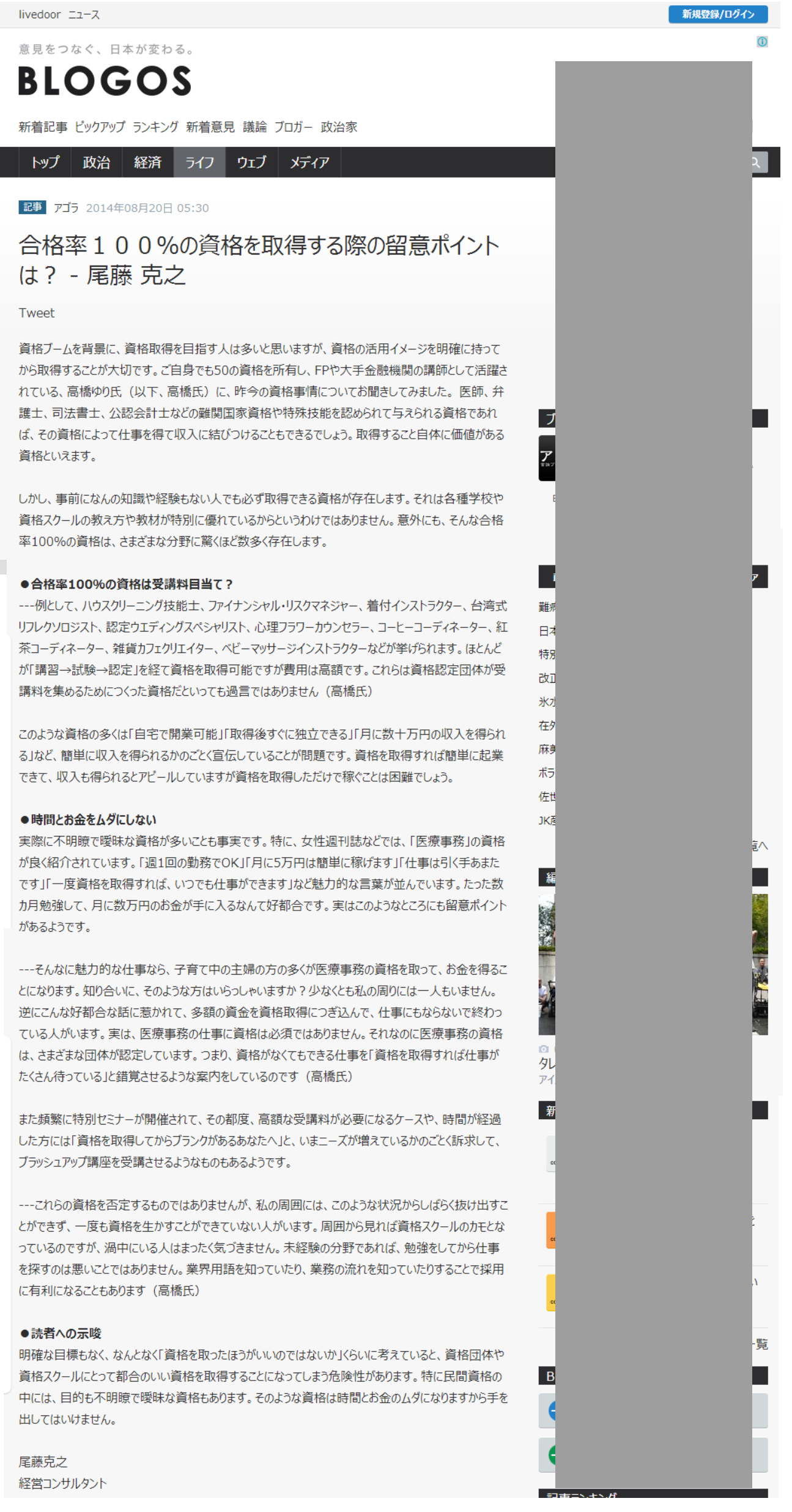 2014/8/20 BLOGOSに掲載されました。 |