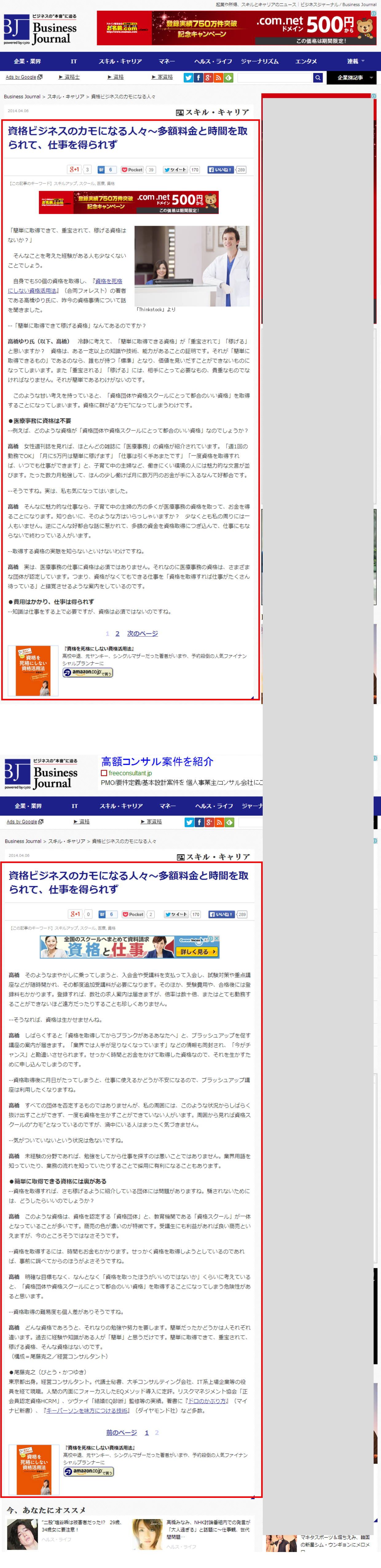 2014/4/6 ビジネスジャーナルに、書籍【資格を死格にしない資格活用法】の紹介記事が掲載されました。 |