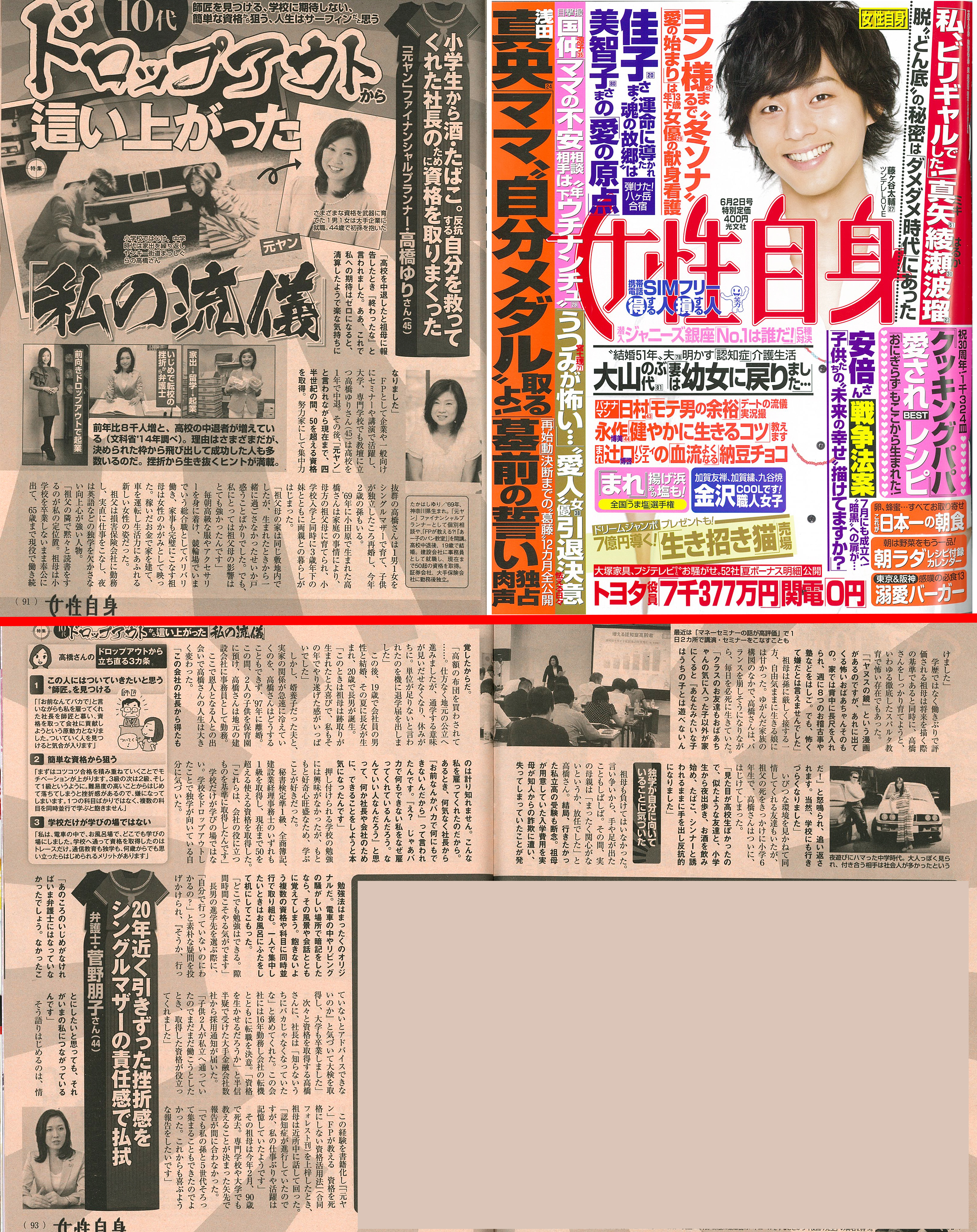 2015/5/28 女性自身6月9日号で紹介されました。 |