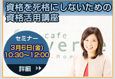 2014/03/06 『資格を死格にしない資格活用法』 10:30〜12:00 子どもを育てながら、子育てが一段落したら、働きたいな〜 |